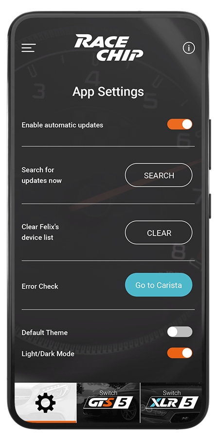 So far, we offer the RaceChip App in combination with the following products: the RaceChip GTS Black; RaceChip GTS, RaceChip RS; RaceChip XLR and the RaceChip RX.